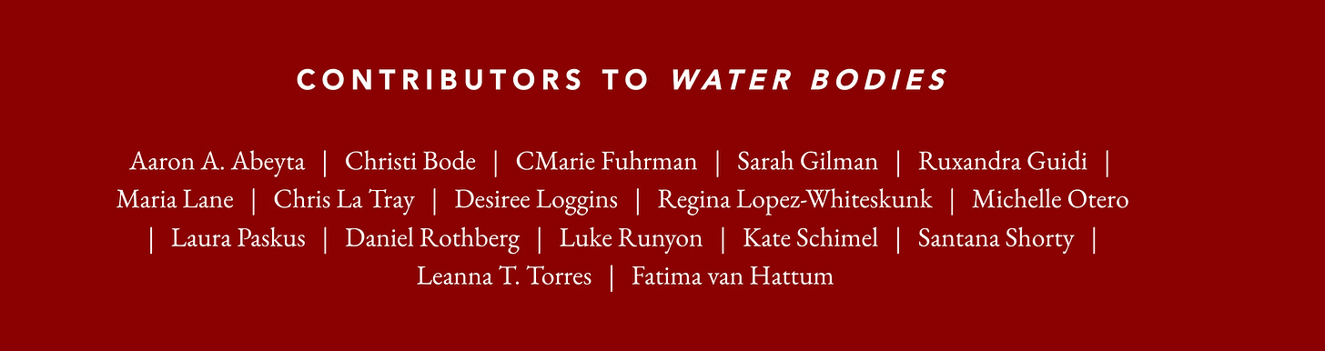Water Bodies: Love Letters to the Most Abundant Substance on Earth just won a New Mexico Book Award. As part of a recent event, I created a Reader’s Guide for the anthology, which you can download off my website. And a huge thanks to all the beloved writers in that collection: